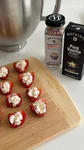 Prep Strawberries: Slice strawberries in half lengthwise. Trim bottoms if needed so they sit flat. Scoop out a small well in the center.